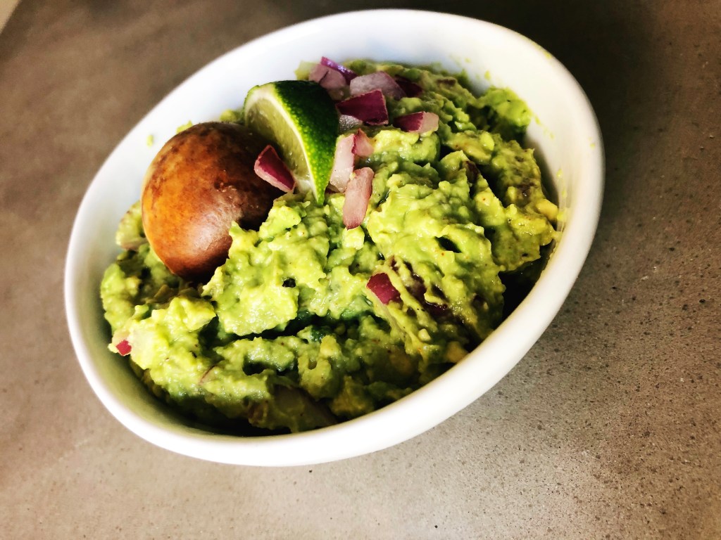 I plate it. That’s a fancy way of saying I take the guacamole from the prep bowl and put it in a nicer one––my edible art on display.